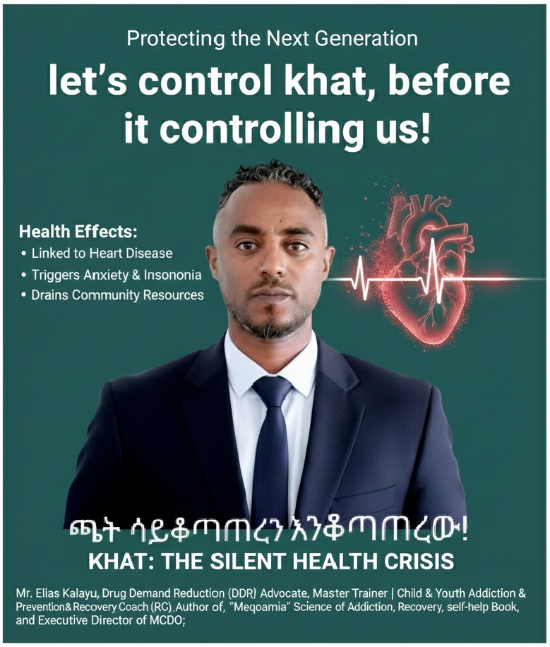 This campaign by Meqoamia Community Development Organization (MCDO), led by Elias Kalayu, calls on policymakers, health professionals, community and faith leaders, and young people to stand together for khat regulation in Ethiopia. With the evidence now clear, the real question is no longer whether khat should be regulated, but how quickly Ethiopia can act to ensure that khat does not control our health, our families, and our future.