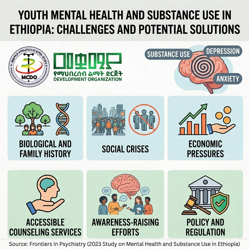 Research indicates that engaging in various forms of substance abuse and mental health disorders are inseparable. When young people begin regular use of alcohol, khat, and other narcotic drugs, their risk of developing mental illnesses increases significantly.